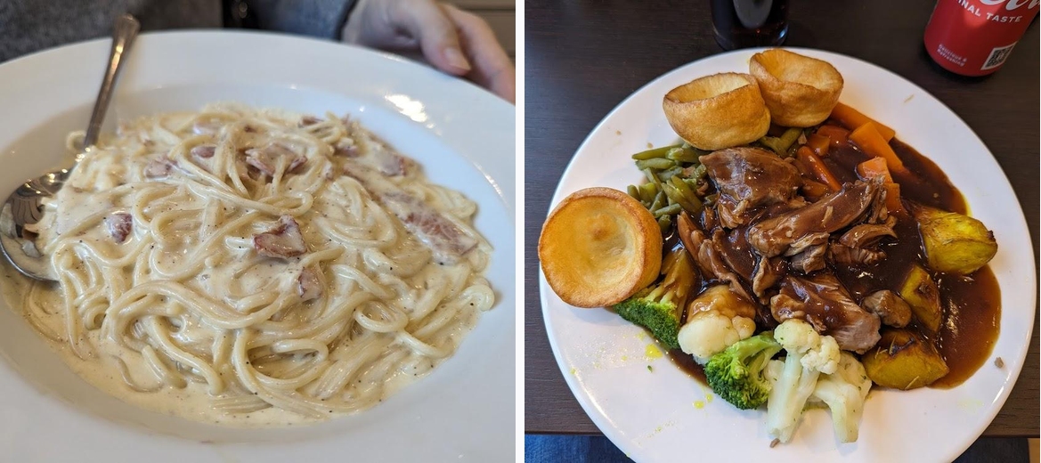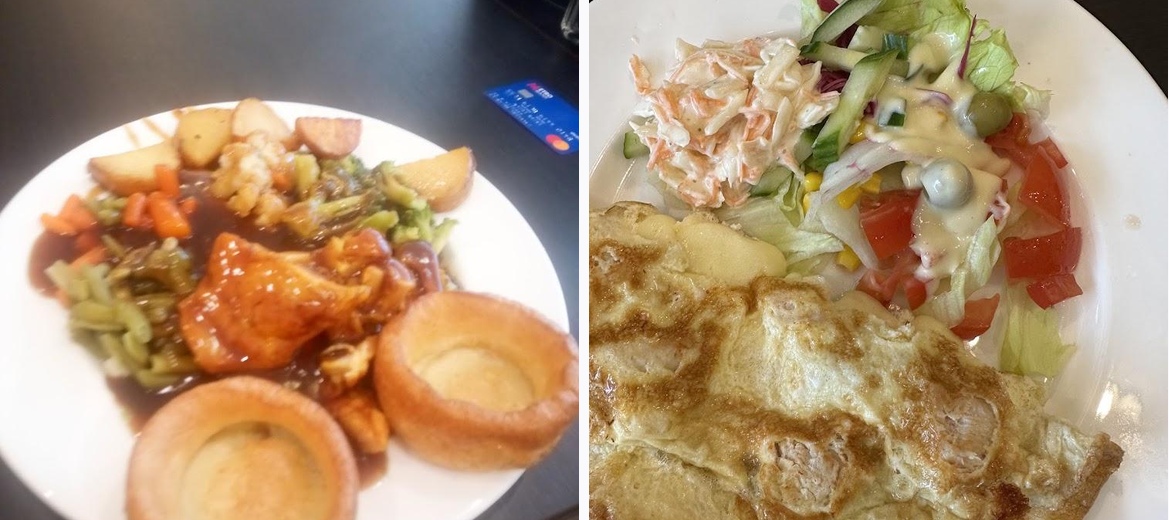 Stunning roast chicken dinner the chicken melted in your mouth the veg was fresh gravy was delicious potato perfect honestly this is the best roast dinner I've ever had from any cafe also £9.95 a bargain They also do nice omelettes :)